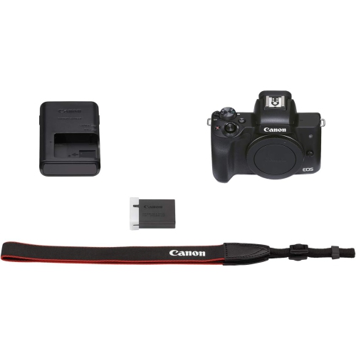 Catering to vloggers and content creators, the black Canon EOS M50 Mark II is a versatile multimedia camera with a well-rounded photo and video feature-set. Sporting improved focusing, recording, and sharing capabilities, the M50 Mark II still revolves around the proven 24.1MP APS-C CMOS sensor and DIGIC 8 image processor, which enable a quick 10 fps shooting rate, a native sensitivity range of ISO 100-25600, and UHD 4K video recording at 23.98 fps, along with Full HD 1080p60 and HD 720p120 for slow motion capture. Sensor-based Dual Pixel CMOS AF has been improved with faster speeds and refined Eye Detection AF performance, and supports both Eye Detection and Face Detection focusing modes when working with Movie Servo AF to help keep sharp focus on the subject matter. Additionally, Combination IS 5-axis image stabilization also helps to realize steady, shake-free recording by minimizing the appearance of camera shake.Beyond just imaging, the M50 Mark IIs physical design also suits content creation, especially with the inclusion of a large 3.0 LCD that sports a vari-angle design for working from high and low working angles and its touchscreen interface allows working with Touch and Drag AF for easier manipulation of the AF area. A 2.36m-dot OLED electronic viewfinder also allows for high-resolution eye-level viewing, too. Additionally, built-in Wi-Fi with NFC is available for quick and convenient pairing with a smartphone or tablet for wireless image sharing, and Bluetooth is also featured for image sharing to and remote camera control from a mobile device. Wireless connectivity also permits using the M50 Mark II as a webcam when using the EOS Webcam Utility Software. Also benefitting content creation, there is now vertical video recording capabilities, a movie self timer function, touch record control, and support for image.canon Cloud Service for improved workflow efficiency.24.1MP APS-C CMOS Sensor and DIGIC 8 Image ProcessorBoth a 24.1MP APS-C CMOS sensor and DIGIC 8 image processor are used to deliver high sensitivity and fast camera performance to suit both stills and video applications. A flexible ISO 100-25600 range, with an expandable ISO 51200 setting, suits working in a variety of lighting conditions, and the processing capabilities minimize noise and afford Auto Lighting Optimizer for notable clarity in various shooting situations. UHD 4K video recording is also supported at 23.98 fps, along with Full HD 1080p60 and HD 720p120 settings for slow motion recording. Vertical video recording is supported, too, as well as clean HDMI output for high-resolution, high frame-rate streaming. Additionally, the processor affords a 10 fps continuous shooting rate, fast camera startup time, and short interval times between each frame for a more intuitive and efficient shooting process.Enhanced Dual Pixel CMOS AFDual Pixel CMOS AF offers smooth and fast focusing performance in a similar manner to how a camcorder acquires focus. This system integrates two separate photodiodes within each pixel to provide a broad and dense network of phase-detection gathering elements across a majority of the image sensor to reduce focus hunting for faster, more direct control of focus placement. When working with still imagery, this focusing system works to acquire focus quickly and accurately, making it ideally suited to shooting and tracking moving subjects so that critical focus is attained with each shot. Eye Detection AF can also be used for portraiture and helps to prioritize focus on a subjects eye for ensured sharpness.