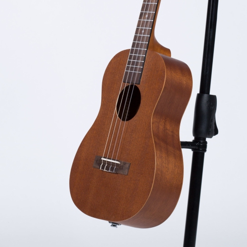 This baritone ukulele is constructed with a mahogany top, back, and sides. It is also equipped with a built-in pickup for amplification and stable diecast tuners.