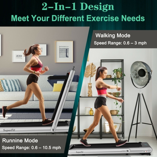 ● Foldable Running Machine: Considering your convenience, this 2-in-1 Superfit treadmill with 2 built-in wheels can be folded so that you can easily transport and store it to save your home space. Please remove 2 handles before folding.