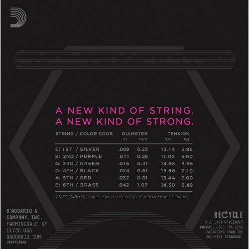 • NYXL0942 are designed with super light gauges for maximum flexibility: Plain Steel .009, .011, .016, Nickel Wound .024, .032, .042