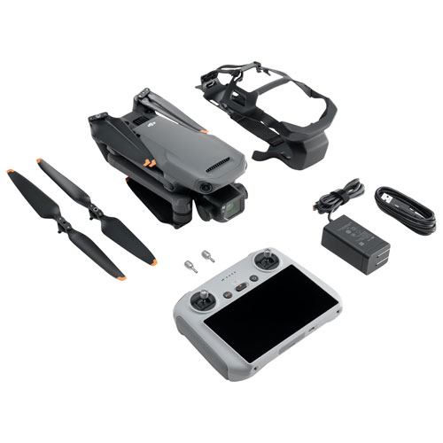Includes remote control, remote control sticks, battery, three low-noise propellers, a portable charger, storage cover, and type-C cable