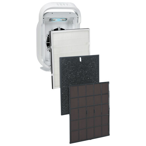 Large, activated granular carbon filter removes common household odours and smoke particles from the air