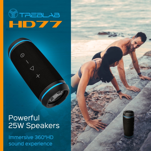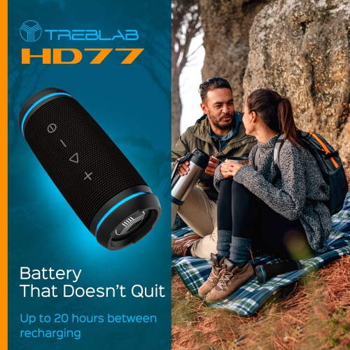 - OUTDOOR SPORTS SPEAKER - The TREBLAB HD77 is an outdoor speaker that allows you to take your music with you anywhere you go. Use freestanding or attach to a backpack with the strap and carabiner..