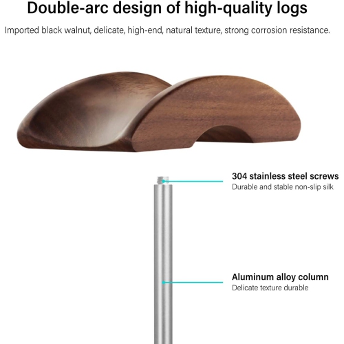 Wooden Metal Matte Stand: Made of natural black walnut tray and full body premium metal. Sturdy & Stable: Solid heavy base has anti-slip design for excellent stability. Note: when you place the headset stand on the desk please be sure the desk is flat and dust free. Superb Workmanship: The CNC precision crafted finish can effectively protect your cherished headphone from scratch. Widely Use: The headphone stand with unique and stylish design. Ideal for home, office, studio, bedroom, also suitable for exhibition center store display. Universal Compatibility: The stand is suitable for most models of headphones, such as Sennheiser, Bose, Beats, Sony, Audio-Technica, AKG, Philips, Plantronics, Shure, Jabra, JVC, JBL, DJ, Gaming headsets.