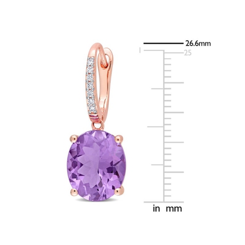 Beautifully Crafted in 14K Rose Gold with a Polished FinishStone Type: Amethyst; Color: Violet; 7.40 CTW; Quantity: 2; Brilliant Cut; Oval Shape; Dimensions: 12x10 mm; Natural; Prong SettingStone Type: Diamond; Color: H-I; Clarity: I1-I2; 0.11 CTW; Quantity: 14; Brilliant Cut; Round Shape; Natural; Prong SettingAmethyst Gemstone is the Birthstone for the Month of FebruaryThese Diamond Earrings are the perfect gift for any birthday, anniversary, graduation, stocking stuffer, holidays, thank you, thinking of you, Christmas, Mother's Day, Valentine's Day or for any reason at all