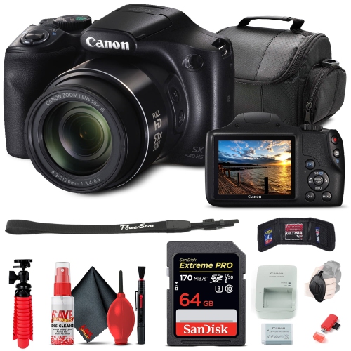 Characterized by its long-reaching zoom, the PowerShot SX540 HS Digital Camera is also benefitted by the inclusion of a 20.3MP High-Sensitivity CMOS sensor and DIGIC 6 image processor to realize notable image quality, sensitivity to ISO 3200, and 5.9 fps continuous shooting, as well as the ability to record full HD 1080p video at 60 fps. The 50x optical zoom lens covers a 24-1200mm equivalent focal length range, spanning wide-angle to super telephoto perspectives, and an Intelligent IS image stabilization system supports this range by minimizing the appearance of camera shake when shooting both photos and movies. Balancing this extended reach, an ergonomic body design incorporates a large grip for further stability, as well as a large 3.0" 461k-dot LCD for composing imagery and reviewing photos and movies. Additionally, built-in Wi-Fi with NFC allows you to wirelessly share your imagery directly to a linked smartphone or tablet.