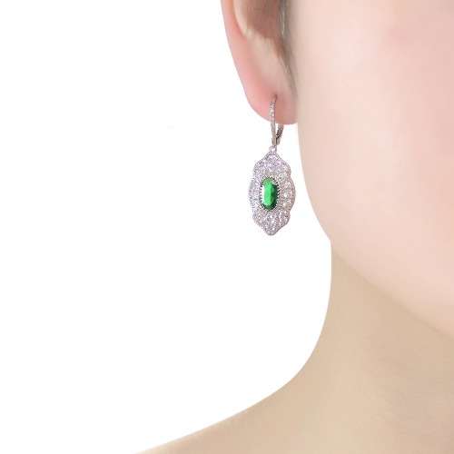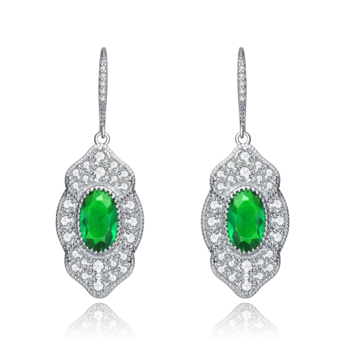 Rozzato Sterling Silver Emerald Cubic Zirconia Pave Drop Earrings