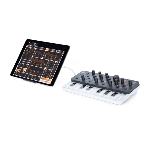 SKULPTsynth SE is a powerful portable performance synthesiser that allows musicians to perform and compose anywhere. This lightweight USB or battery-powered synthesiser features a unique 32-oscillator virtual analogue sound engine. Its mighty synth architecture features 2 WAVE groups, incorporating four oscillators per voice, a morphable 2-Pole resonant Filter plus a comprehensive 8-slot modulation matrix and digital effects.