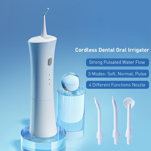 This portable cordless water flosser is cordless and lightweight. Ideal for travel and every outdoor activity as well as home use.