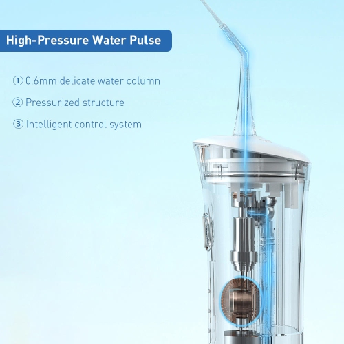 Professional Water Pick high-pressure water pulse and 0.6mm delicate water column rinse off the food residue between teeth and below the gums, where the toothbrush alone can not reach.