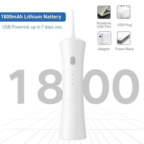 Our rechargeable oral irrigator with 1800mAh powerful lithium battery is able to be used continuously for 7 days once fully charged.
