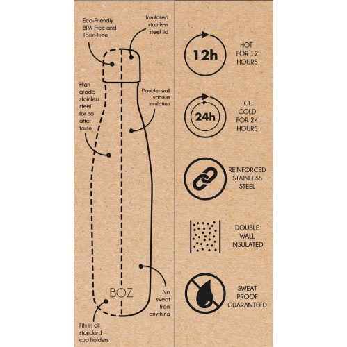 We cover all of our customers with 100% Money Back Guarantee. If you are unsatisfied with your Stainless Steel Water Bottle, return it back to us within 30 days and receive a full refund.