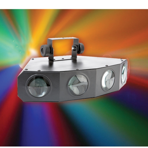 Orion ORFX102 HypnoRay II is a highly effective intelligent LED multi-effect useful for mobile DJ or installation applications. Bright LEDs on a wide angle dispersion pattern ensure the HypnoRay II can create an impressive light display from a single fixture. Ideal for creating a color wash over a dance floor or creating motion scenes over walls and ceilings of the venue.