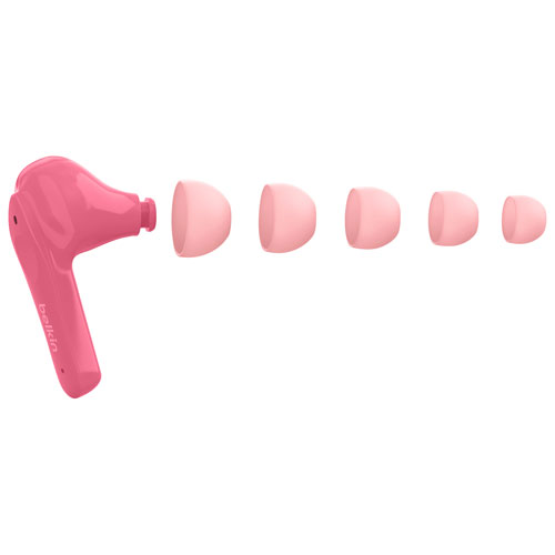 In-ear buds offer a secure and customized fit for little ears with five silicone ear tip sizes included