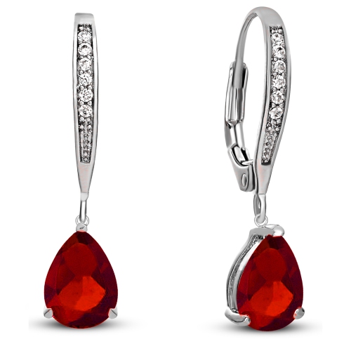 Rozzato Sterling Silver Ruby Cubic Zirconia Dangling Earrings