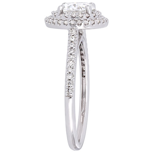 Halo Engagement Ring in 14k White Gold with 0.34ctw Diamonds & White Moissanite - Size 8
