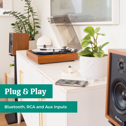 ·PLUG AND PLAY SETUP - Unbox, connect, relax. The pre-installed cartridge and built-in preamp allows you to simply connect your system and transport into music listening bliss