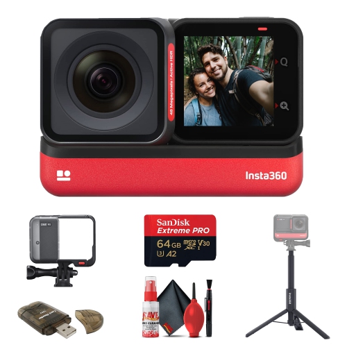 The Insta360 ONE RS 4K Edition is a modular action camera system with interchangeable lenses. This edition is designed for action sports and includes the ONE RS Core module, the ONE RS Boost 4K lens, the ONE RS battery base, and a ONE RS mounting bracket. The 4K Boost Lens captures 4K60 video, up to 6K widescreen video, and 48MP still photos, and it features a 1/2" image sensor with Active HDR support. The ONE RS features 21% more battery capacity than the ONE R, and it also features crisper audio with three microphones and faster Wi-Fi transfers. The Core module, which is the brain, and any other module of your choice, mount side by side on the Battery Base. A 1-Inch Wide Angle Lens, which captures 5.3K resolution video, and a 360 Mod are also available separately and can be swapped in for added versatility.