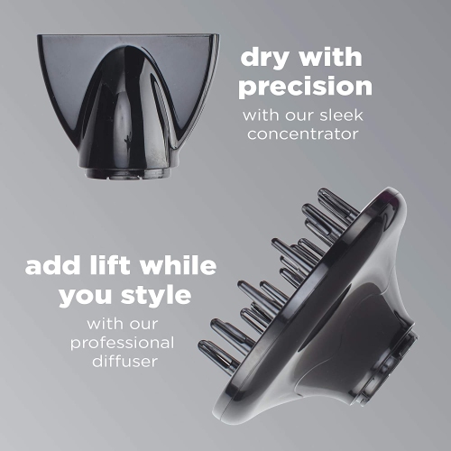 Ionic Conditioning: Natural ion output helps fight frizz and bring out your hair’s natural shine; Includes a concentrator nozzle for focused airflow to make hair smooth and sleek, plus a diffuser for textured styles