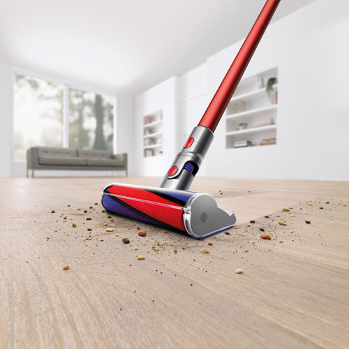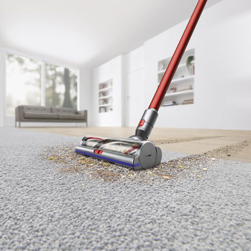 High Torque cleaner head drives stiff nylon bristles into carpet to remove deep-down dirt, while anti-static carbon fibre filaments remove fine dust from hard floors