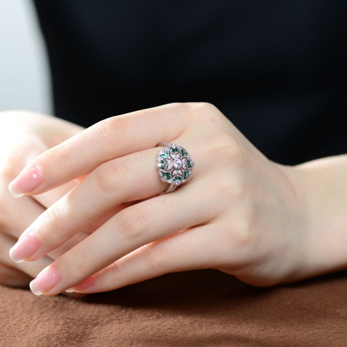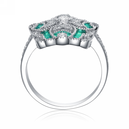 Rozzato Sterling Silver Emerald Cubic Zirconia Floral Cocktail Ring Size 7