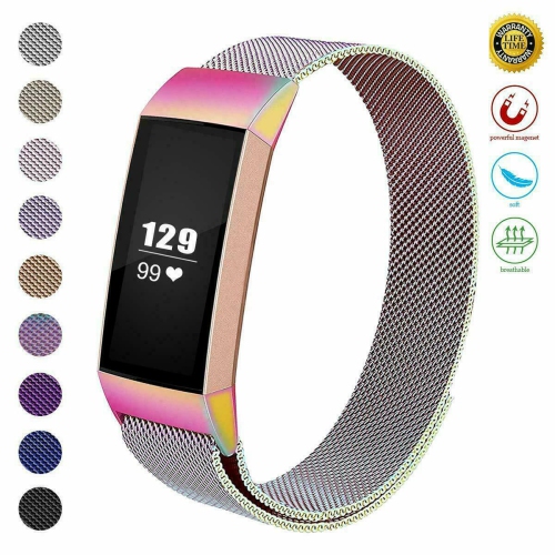 2 Pack For Fitbit Charge 3 / 4 Strap Replacement Metal Stainless Steel Magnet Wristband Band (Colorful / Small)