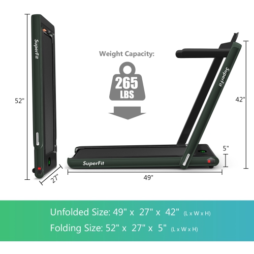 ● Spacious Running Belt and LED Display and Phone Bracket: LED display monitors the real-time speed, time, calorie, and distance and takes up to 265 lbs maximum of weight on it. It has a wide and non-slip running belt for safety during a workout. The treadmill is equipped with a phone holder to keep the phone accessible and watch videos during the workout.
