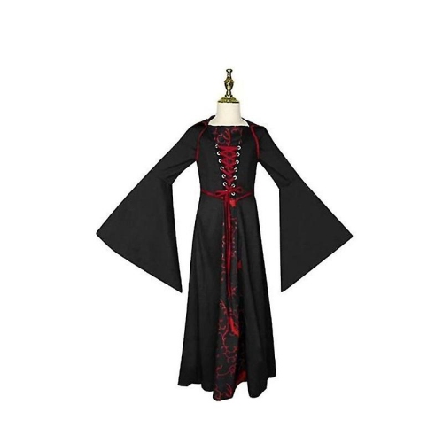 UNIQUE DESIGN -- Our girls vampire halloween costumes is decorated with oversized bell sleeves , flowing skirt , red ribbon details on the chest and retro print makes you look more mysterious and elegant.