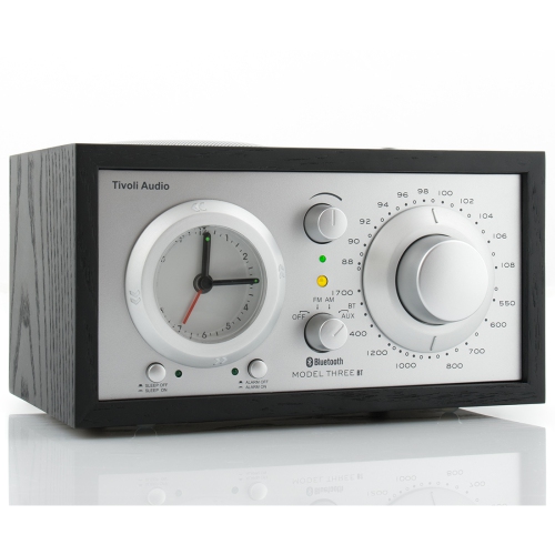 Any clock radio can wake you up, but only the new Tivoli M3BTBLK Model Three BT does so elegantly, and in high fidelity sound. With Bluetooth wireless technology on board, you can stream before you dream. The constant gentle illumination makes the clock face visible in low or no light without keeping you awake. The sensitive AM/FM tuner, easy-to-use alarm and sleep function, and beautiful natural wood cabinet make the Model Three BT an ideal clock radio for your bedside table.