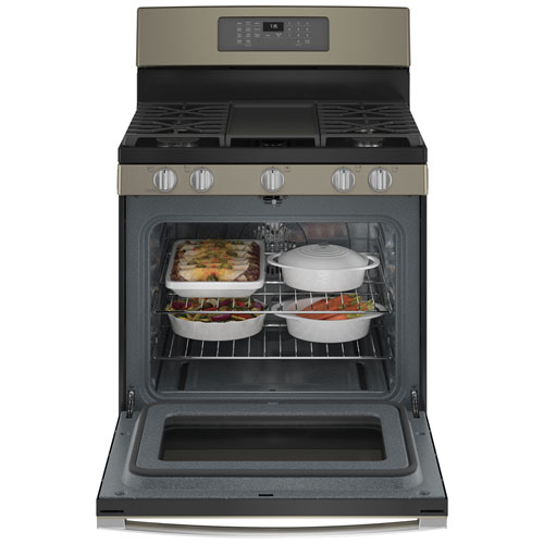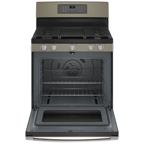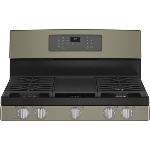 GE 30" 5.0 Cu. Ft. Fan Convection 5-Burner Freestanding Gas Air Fry Range (JCGB735EPES) - Slate