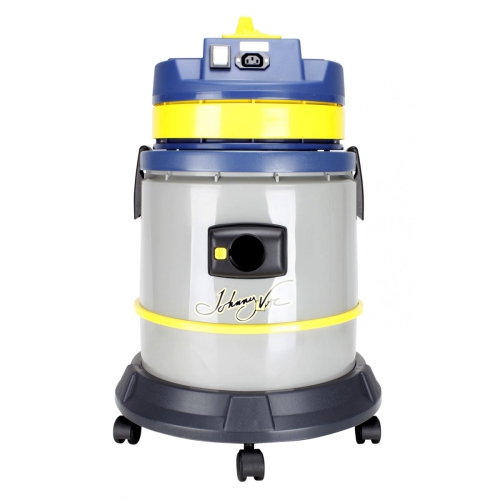 With its 7.5 gal (28.5L) tank and capability to suck up dry particles as easy as liquids, this compact, versatile Wet & Dry commercial vacuum is an excellent tool for heavy duty jobs. The JV125's cart is mounted on four swivel casters/wheels, and its flared shape prevents capsizing. It is also equipped with an electric outlet for a power nozzle or any other electrical device.