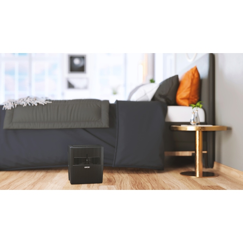 The Venta LW25 Humidifier humidifies dry room air in spaces up to 40 square meters (with standard 2.5-meter ceilings) using evaporative humidification. As a disk stack rotates in the water reservoir, clean water evaporates to humidify the air in your space. This cold evaporation process is recognized as the best humidification method. By implementing the principle of humidifying air for homes and offices without the use of filters, the Venta Humidifier is hygienic, simple to use, and easy to clean. Properly humidified air will also eliminate static electricity as well as work to preserve wooden furniture and musical instruments. Venta Humidifiers offer the consistent performance of high-end German engineering; delivering optimal indoor air quality with properly humidified air to breathe. This compact 7-liter capacity humidifier is powerful enough to work with indoor spaces of up to 40 meters, perfect for a living room or master bedroom, and is designed to resist over-humidifying the interior.