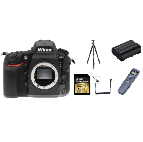 Harness the power of extreme resolution, jaw-dropping image quality and huge dynamic range in both stills and Full HD 1080p video applications. Anewly designed 36.3 megapixel FX-format full-frame image sensor with no optical low-pass filter is paired with the thrilling performance of EXPEED4 for staggering detail retention, noise-free images from ISO 64 to ISO 12,800, fast frame rates, cinematic video capabilities, in-camera editingfeatures and outstanding energy efficiency. For still and multimedia photographers, The D810 will ignite your creativity and help you captureimages that astound. For cinematographers and camera operators, the D810 will become one of the most versatile tools in your arsenal. The D810 willexpand your vision and make you rethink what’s possible.The evolution of high resolution.One look at the jaw-dropping image quality possible with the D810 and youll never look at image quality the same way. The level of detail andsharpness, the wide dynamic range and rich tonality in nearly any light is simply staggering—almost unimaginable until now. For still andmultimedia photographers including landscape, studio, wedding and portrait pros, the D810 will ignite your creativity and help you capture imagesthat astound. For cinematographers and camera operators, the D810 will become one of the most versatile and important tools in your arsenal. Withmeticulous autofocus, fast frame rates and image processing, smaller file formats, excellent energy efficiency and exciting new capabilities forall manners of shooting, the D810 expands your vision and lets you rethink what’s possible.One look changes everythingThe bar has been raisedThe D810 truly raises the bar for image quality and dynamic range. An all-new FX-format full-frame image sensor design—36.3-megapixels with nooptical low-pass filter—is paired with Nikons innovative EXPEED 4 image processing for flawless detail retention from snow white to pitch black,beautiful noise-free images from ISO 64 to ISO 12,800, an extremely wide dynamic range, flattering well-saturated skin tones and much more. Thecombination reveals the true optical precision of NIKKOR lenses, which provide flawless rendering even at these pixel counts. For those seeking theultimate in D-SLR image quality, the D810 delivers.Take productions to the next levelOutstanding on TV, video and film setsThe D810 is the full-frame D-SLR that cinematographers, camera operators and multimedia photographers have been waiting for. Bring the camerasremarkable image quality and dynamic range to 1080p videos recorded at 60/50/30/25/24p uncompressed to an external device, compressed to aninternal CF/SD card or both simultaneously. Move between dark and light scenes without any iris or frame-rate adjustments thanks to ISO AutoAdjust. Smoothly change a shots depth of field with power iris control. Shoot in a flat picture style that enhances dynamic range and streamlinespost-production work. Even enjoy broadcast-caliber audio control right in the camera. Let the D810 and the vast collection of NIKKOR lenses takeyour production to the next level.Command performanceWhere speed and accuracy convergeThe D810 performs with astounding speed and precision. Capture 5 fps at full resolution and in 5:4 crop mode, 6 fps in 1:2 crop mode and 7 fps inDX-crop mode*. Enjoy tack-sharp focus—crucial in high-resolution images—thanks to an Advanced Multi-CAM 3500FX AF sensor that uses 51 focus points,including 15 cross-type sensors, 11 of which work all the way to f/8, plus a new Group Area AF. Internal vibration has been nearly eliminated witha newly designed sequencer mechanism and Electronic Front Curtain Shutter system. You can even quickly spot-check your focus by zooming in 46x onthe large 3.2-inch 1,229k-dot display with RGBW alignment and monitor highlights during video capture with zebra striping right in the display. TheD810 is as nimble as it is precise.*When using optional MB-D12 battery pack and EN-EL18a battery (for up to 100 jpeg shots)Liberating versatilityThrilling new capabilities and inspirationThe D810 is a versatile camera for versatile shooters. Produce stunning star-trail images with unlimited continuous shooting—capture images for aslong as your battery or memory card will allow. Create smooth, even time-lapse sequences thanks to new Exposure Smoothing. Preserve details in boththe shadowy and bright areas of stage performances and other spot-lit situations with Highlight-weighted Metering. Use the D810s pop-up flash as aCommander for Nikons Creative Light System—a major convenience for location photographers. Save your files in a new 12-bit uncompressed RAW sizeS* format thats half the size of RAW size L. Wherever your passion and inspiration takes you, the D810 will follow.*In-camera RAW processing or some retouch options, such as image overlay, cannot be applied.