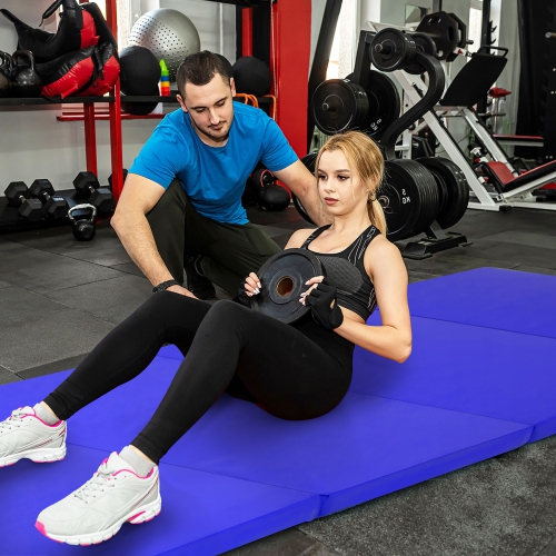 Easy to Fold & Carry: Equipped with two sewn handle on the both ends of the mat, this gymnastic mat is easy to hold and carry