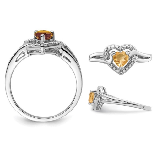 Beautifully Crafted in 0.925 Sterling Silver with a Polished FinishStone Type: Quartz; Color: Yellow; 0.400 CTW; Quantity: 1; Brilliant Cut; Heart Shape; Natural; Pave SettingStone Type: Diamond; Color: I-J; Clarity: I2-I3; 0.005 CTW; Quantity: 2; Heart Cut; Round Shape; Dimensions: 5 mm; Natural; Prong SettingThis item ships in signature jewelry box packaging, ready for gift-giving with a classic, elegant look and feelThis Heart Ring is the perfect gift for any birthday, anniversary, graduation, stocking stuffer, holidays, thank you, thinking of you, Christmas, Mother's Day, Valentine's Day or for any reason at all