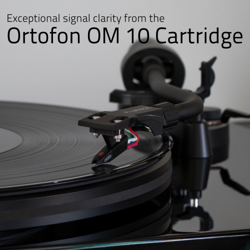 Savor the rich sound of the Ortofon OM10 elliptical stylus; renowned for precise and accurate playback while having a flat frequency response for a natural sound. The servo-controlled belt drive motor maintains an accurate speed while the metal platter, high mass MDF wood plinth and vibration isolation feet inhibit the transfer of unwanted resonance allowing for a greater low frequency signal pickup and improved imaging.
