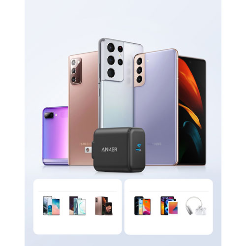 USB-C wall charger with 25 watts of charging power and support for Samsung Super Fast Charging fully charges your Samsung Galaxy S21, S21+, or S21 Ultra in just over an hour