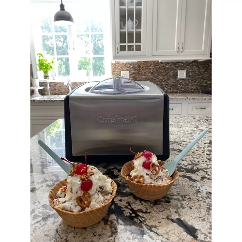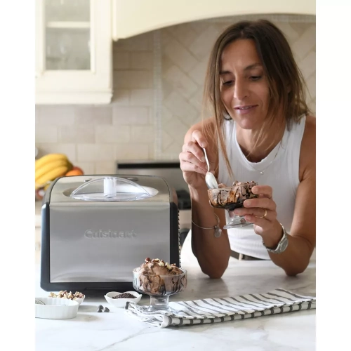 Make one and a half quarts of your own lusciously rich gelato and ice cream - batch after batch - right at home with ease thanks to the Cuisinart® Ice Cream and Gelato Maker! Get professional results every time with separate paddles for gelato and ice cream, and fully automatic operation with a 60-minute countdown timer. The Keep Cool function will kick in after your time is up to keep your ice cream or gelato cool to ensure perfect consistencies every time! Mix-ins can be added through the see-through lid while churning for unlimited flavor combinations. The commercial quality compressor-freezer means it’s always ready to go. Brand Overview Savor the Good Life®. Cuisinart’s Mission as a Brand is to develop and market, innovative, high-end kitchen products that enable consumers to quickly and easily provide their family with home cooked foods from a cup of coffee to an extravagant holiday meal. BPA Free Made with BPA-free materials.