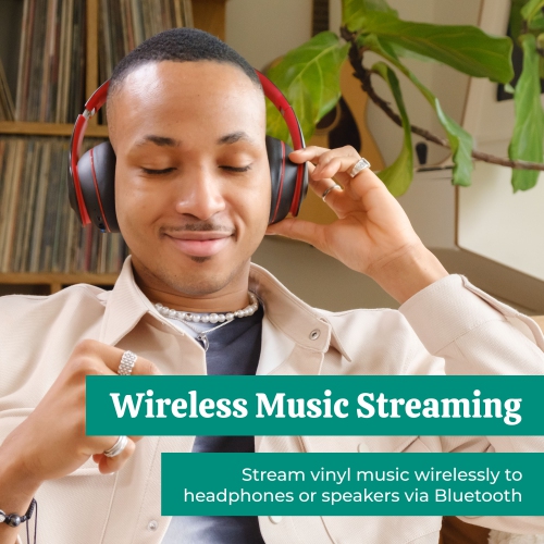 Enjoy the classic ritual of vinyl playback combined with the modern technology of today. Just drop the needle on your favorite record and wirelessly connect and transmit the music from this turntable to any Bluetooth speaker or wireless headphones.