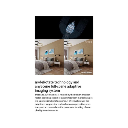By using aspherical distortion-free optical lens and sophisticated CNC motor, combining with nodeRotate technology, precisely capture the ambient light of any complex indoor spaces. Just simply press the shutter, you can get perfect 8K 32MP high resolution images.