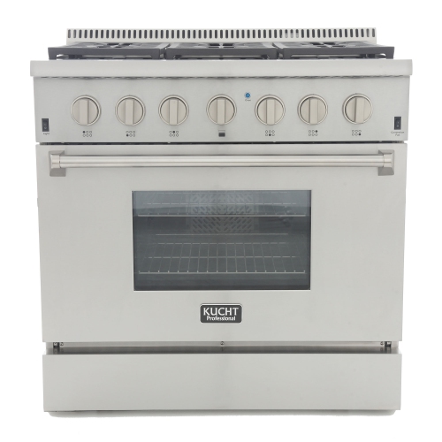 As with all KUCHT ranges, it’s the attention to detail coupled with old-world craftsmanship that will turn the average home cooking area into a restaurant quality kitchen. Fitting larger kitchens, this professional grade 36-in KUCHT range boasts heavy-duty, blue porcelain 5. 2 cu. ft. 22, 000 BTU convection oven, along with a 16, 500 BTU infra-red broiler. Enjoy more cooking power than ever before because your new Pro-Style range features one 18, 000 BTU burner, two 15, 000 BTU dual burners with simmer and three 12, 000 BTU burners.
