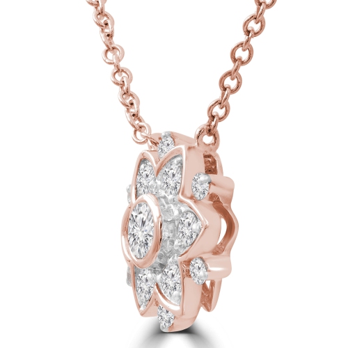 Elegance in physical form. This stunning necklace features 0.12 CTW F-G color VS1-VS2 clarity round diamonds in 14K rose gold.