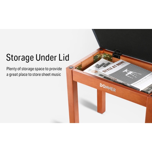 Donner Piano Bench Solid Wood with Storage Wood Color