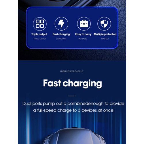 The 3-in-1 car charger is for DJI Mini 3 Pro Drone and supports charging two batteries and remote controller.