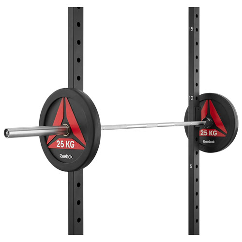 Fixed pull-up bar, adjustable J-cups, and 12 attachment points help you get a solid strength session in