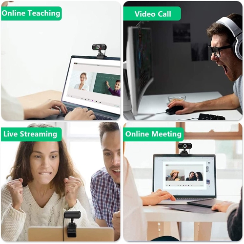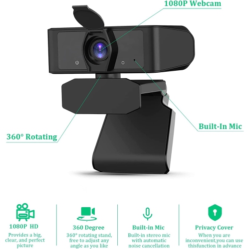 Full HD Video - High resolution 1080P Full HD Webcam. Our 1080P webcam with 1/2.9 F37 image sensor, supply Crisp Image and Crystal Clear Video. Webcam captures your clips in true 1080p glory, and 30 frames per second, so even the most detailed makeup tutorials look crisp and clear. Super Compatibility - Suitable for mainstream software, Compatible with multi system. Versatile 1080P USB webcam for gaming, blogging, conferencing and Live streaming, widely works with Windows 10, Windows 7, Windows 8, Windows 2000, Windows XP, Android TV, Android V5.0, Mac OS X etc. Compatible with Facebook, Skype, OBS, You Tube, Twitch, Twitter, Yahoo Video messenger. Play and Plug - 1080P webcam camera with low light correction, makes you see clearly even in dim light. Easy to Setup, just Play and Plug, No additional driver need. Features a universal clip, with a 5ft USB power cable that fits to laptops and LCD monitors. 120 Degree Wide Angle Webcam with Microphone - Fixed focus Webcam captures Ful
