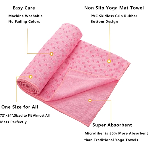 •Extra Large Yoga Towel Size: Standard sized 72 inchx24 inch mat towel,yoga towel is Fits perfectly over a traditional size yoga mat.it also makes a full-sized travel companion. Just toss it in your carry-on or back-pack and enjoy practicing in your hotel room.
