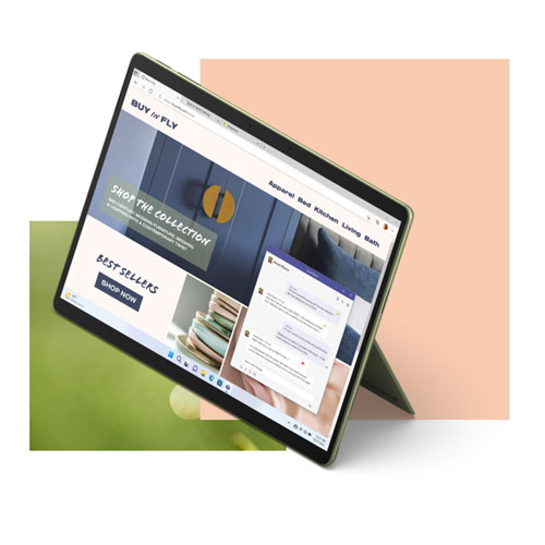 • Virtually edge-to-edge 13-inch PixelSense Flow display with a resolution of 2880 x 1920 is responsive, fluid, and easy on the eyes