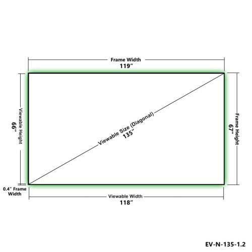 Dimensions: 118" x 66" viewable surface with a 0.4" high-density light-absorbing frame