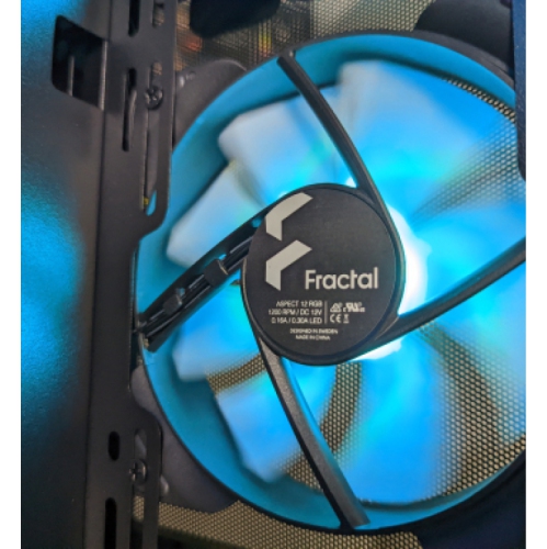 Case: Fractal PopAir RGB with Side Glass Panel with fully colour adjustable fans.